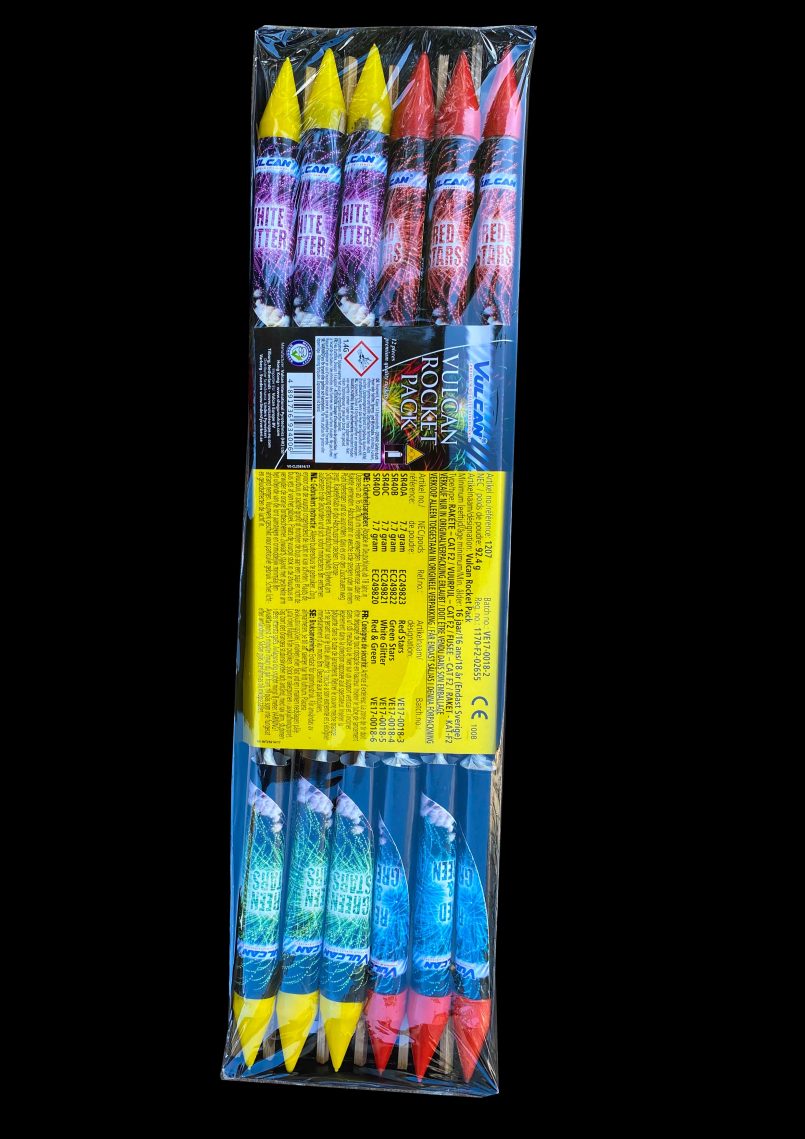 12 kleine vuurpijlen met 4 verschillende kleureffecten (red stars, green stars, white glitter en red and green)